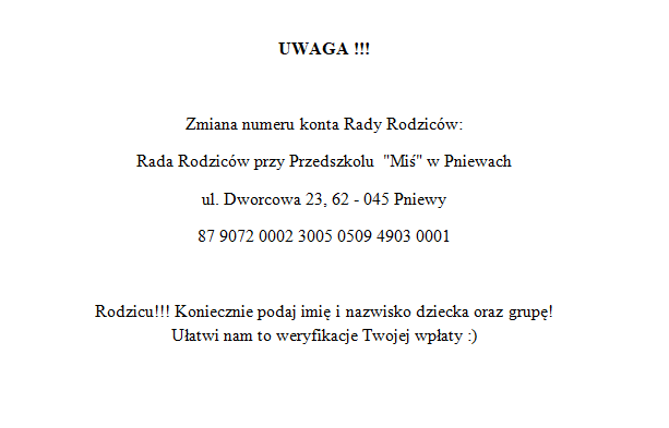 UWAGA !!! UWAGA!!! Zmiana numeru konta