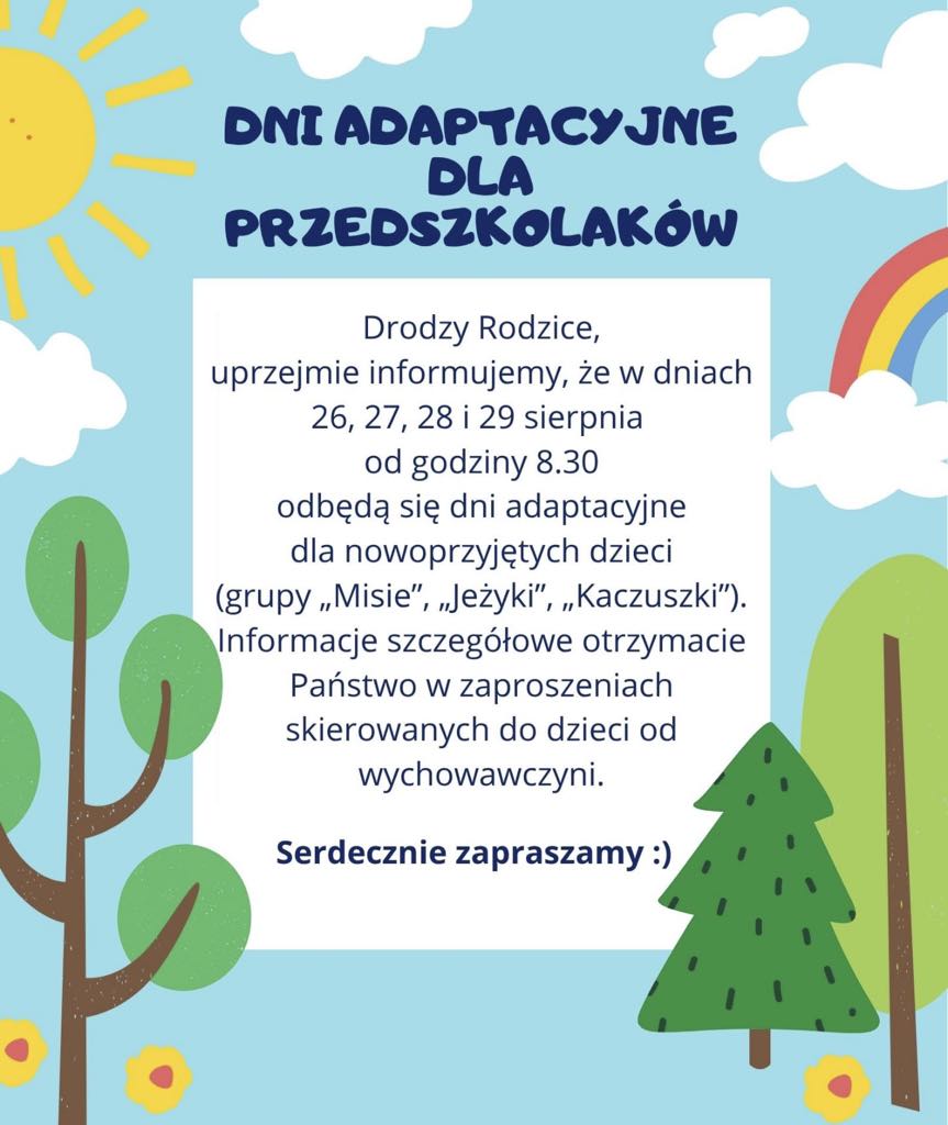 DNI ADAPTACYJNE DLA PRZEDSZKOLAKÓW