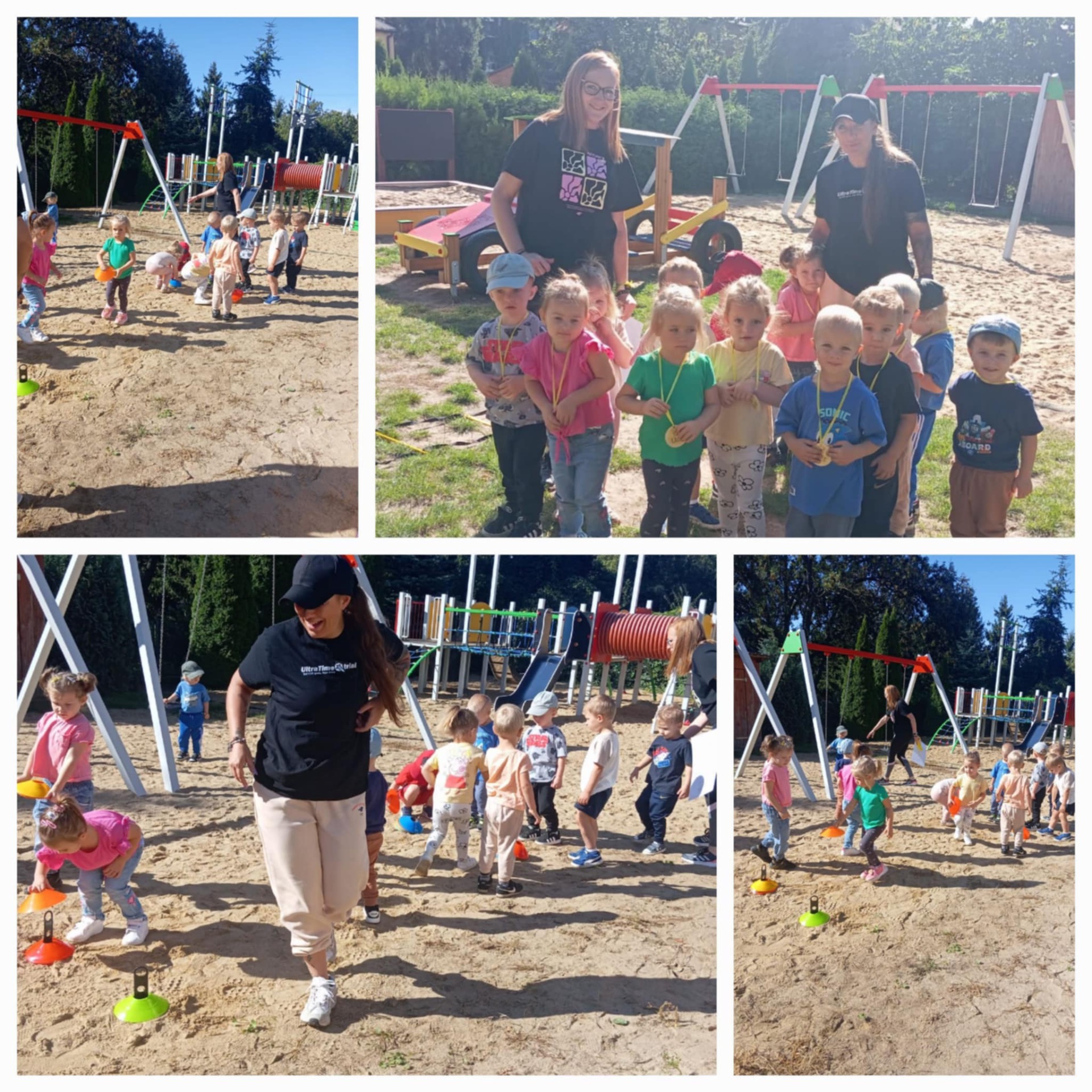 Dla młodszych dzieci przygotowano specjalne zajęcia na placu przedszkolnym. Poprowadziła je przedstawicielka klubu Aktywnie w Pniewach, która zadbała o to, aby nawet najmłodsi mogli doświadczyć radości płynącej z ruchu.