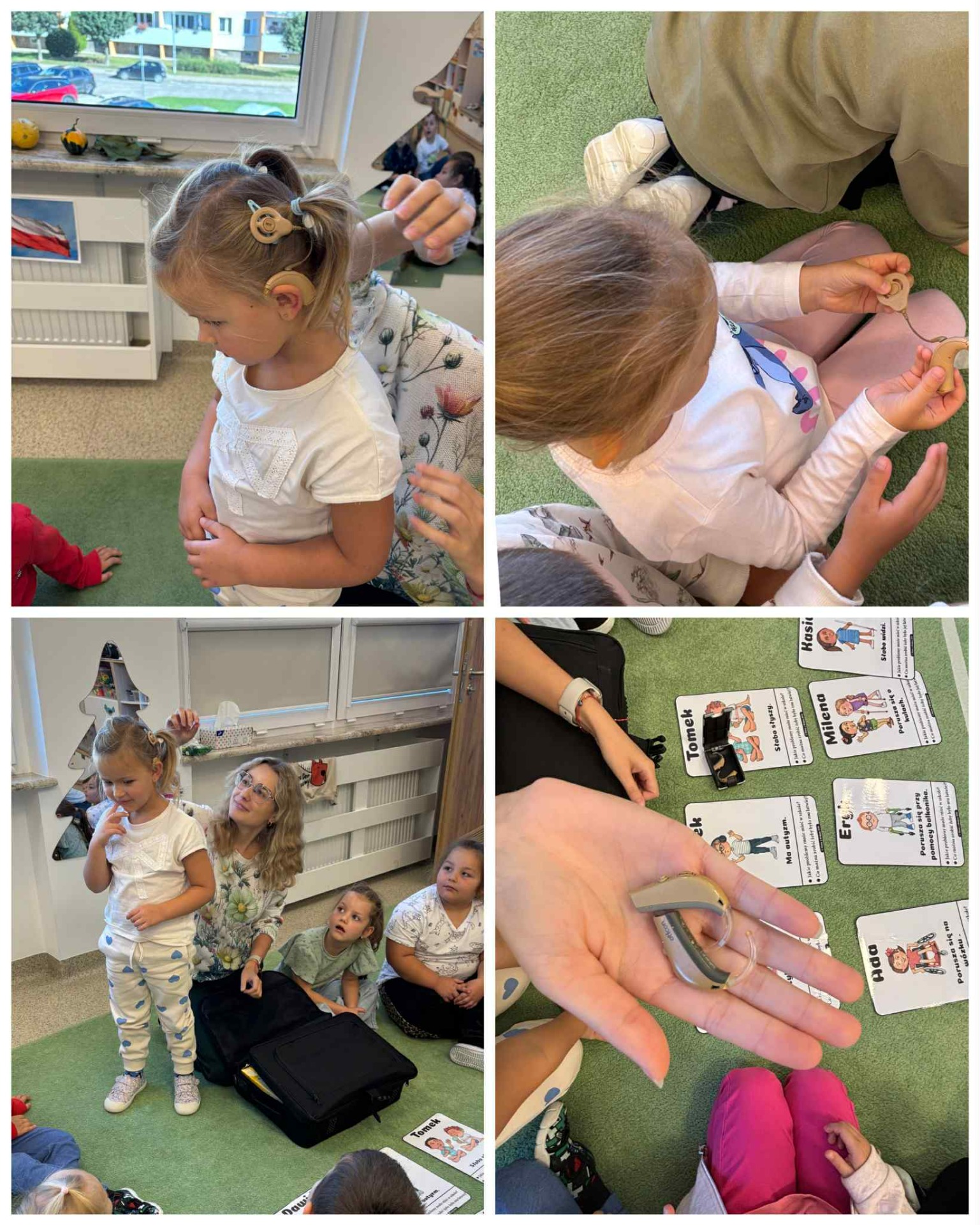 25 września dzieci z grupy „Tropiciele” uczestniczyły w zajęciach poświęconych tolerancji wobec osób z niepełnosprawnościami. Spotkanie miało na celu uwrażliwienie przedszkolaków na potrzeby innych, rozwijanie empatii, kształtowanie postawy otwartości i akceptacji, a także przełamywanie stereotypów dotyczących osób ze specjalnymi potrzebami edukacyjnymi. Szczególną uwagę poświęcono osobom z niedosłuchem. Dzieci miały możliwość zapoznania się z działaniem aparatu słuchowego i implantu ślimakowego, a także poznały podstawowe zwroty w Polskim Języku Migowym. Dzięki temu „Tropiciele” dowiedziały się, że każdy człowiek – niezależnie od swoich możliwości – zasługuje na szacunek, życzliwość i zrozumienie.