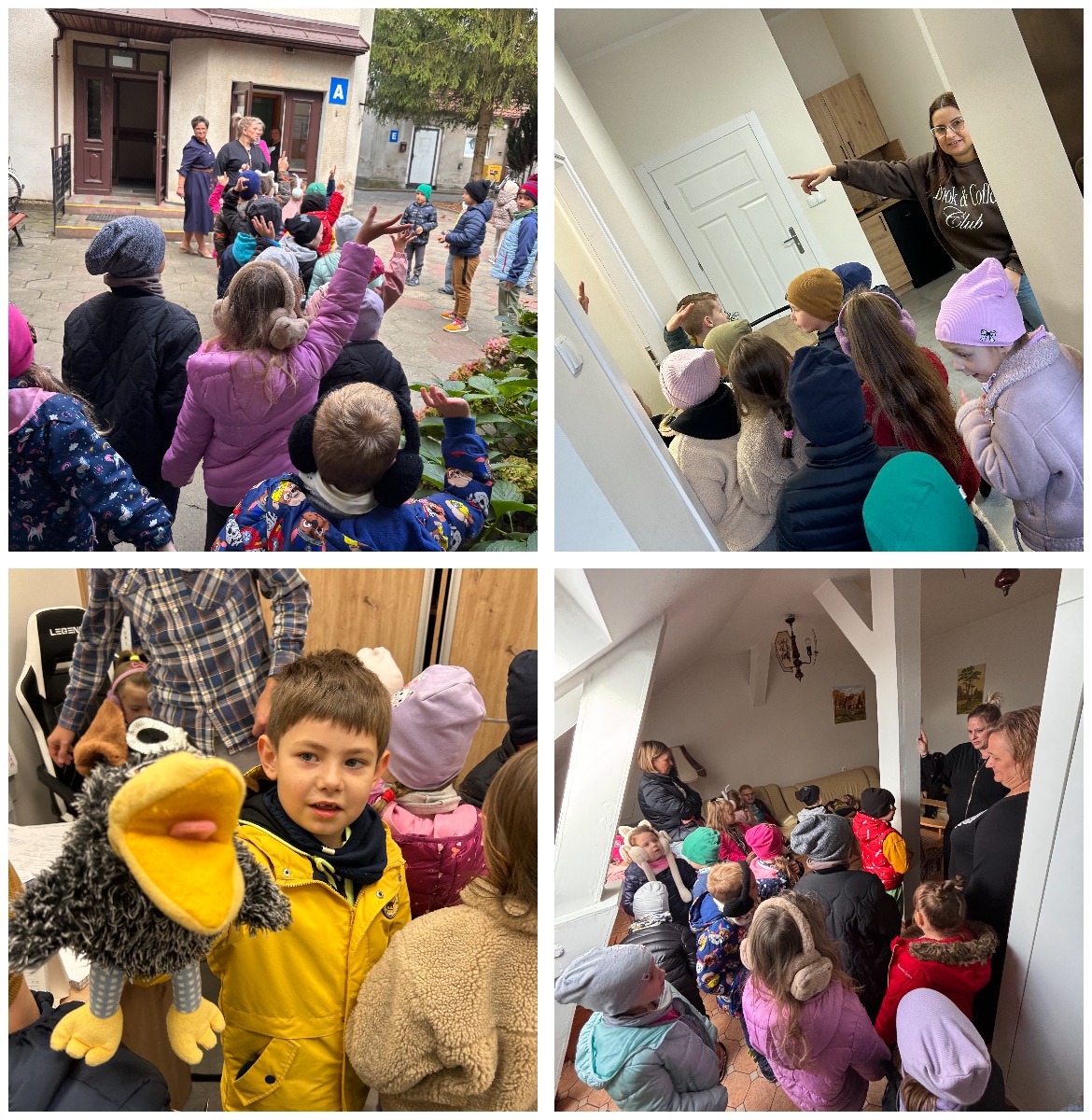 W ramach obchodów Tygodnia Budowania Relacji dzieci z grup „Marynarze” ⚓ i „Odkrywcy” 🧭 odwiedziły Centrum Usług Społecznych w Pniewach. Było to niezwykle ciepłe i inspirujące spotkanie 🤗, pełne pozytywnej energii pracowników tej instytucji ❤️. Na początku pani Dorota i pani Daria w ciekawy i przystępny sposób przybliżyły dzieciom zawód pracownika socjalnego 👩💼👨💼. Opowiedziały o swojej codziennej pracy, o tym, w jaki sposób wspierają osoby i rodziny 🙌 oraz z jakimi służbami współpracują. Dzieci dowiedziały się również czym jest empatia 💞 i dlaczego jest tak ważna w pomaganiu innym. Następnie, wraz z panią Dyrektor Bernadetą Markiewicz, dzieci miały okazję zwiedzić budynki należące do Centrum. Mogły zajrzeć w każdy zakątek 🔎 i zobaczyć, jak wygląda praca w tej instytucji „od środka”. To wyjątkowe spotkanie wywarło na dzieciach ogromne wrażenie 🤩 – wielu z nich zadeklarowało, że w przyszłości chciałoby zostać pracownikiem socjalnym lub nawet dyrektorem takiego miejsca. Serdecznie dziękujemy za gościnę, ciepłe przyjęcie i możliwość spotkania z osobami, które swoją pracą i sercem na co dzień czynią świat lepszym ❤️.