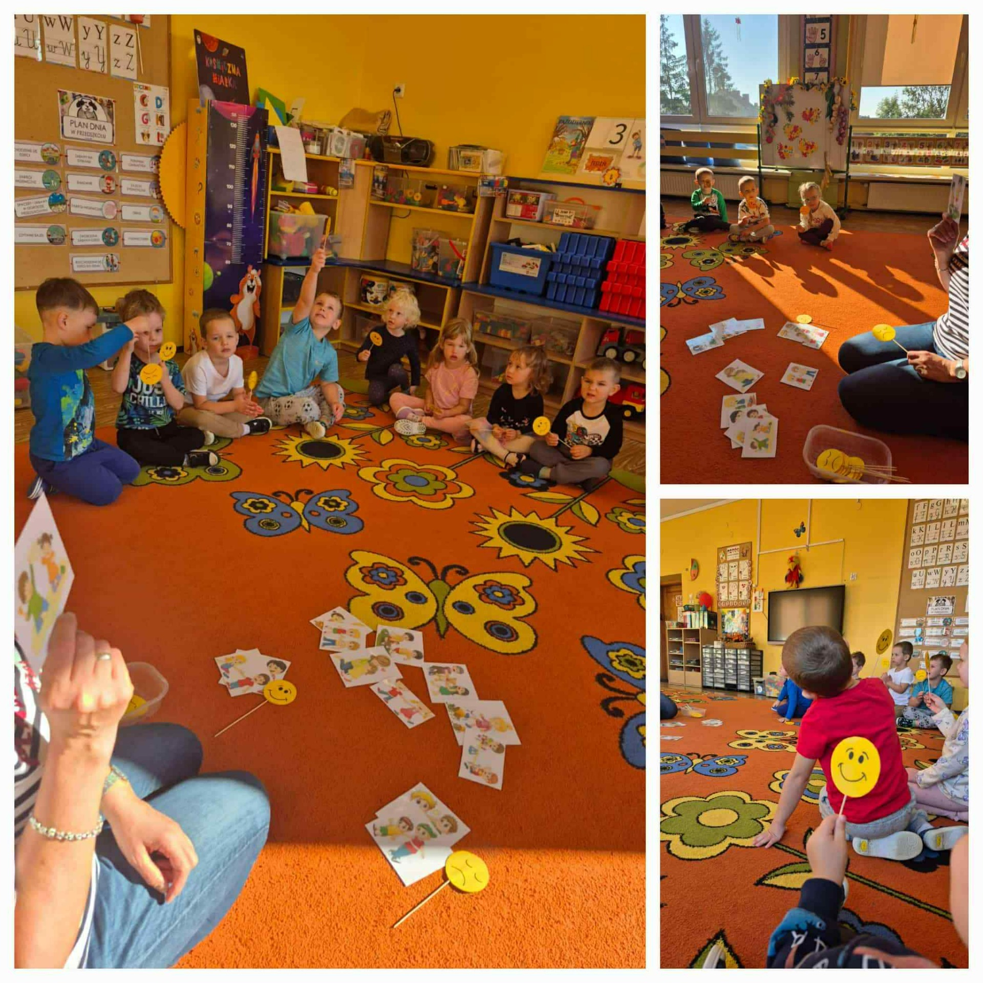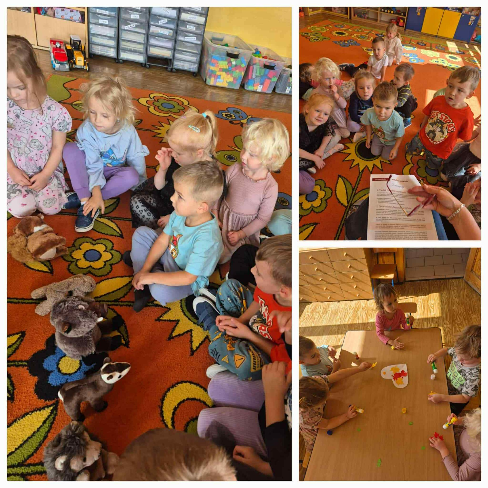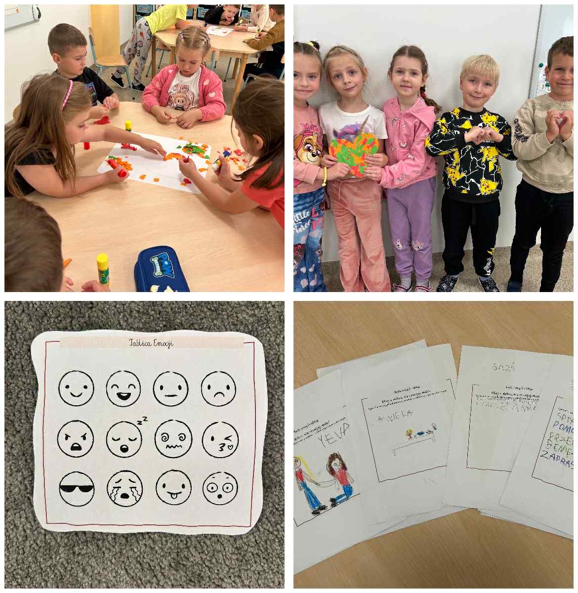 Dzieci miały okazję rozwijać kompetencje społeczne, emocjonalne, wzmacniać otwartość i empatię, a także integrować się między grupami. Wspólne rozmowy i zabawy pozwoliły im lepiej się poznać, uczyć życzliwości czy wzajemnej pomocy. Szczególną radość sprawiły dzieciom zajęcia plastyczne 🎨, podczas których powstały prace z motywem serca – symbolu przyjaźni i życzliwości czy obchody Światowego Dnia Uśmiechu 😊, kiedy przedszkolaki odkrywały, jak wielką moc ma uśmiech w kontaktach z innymi.