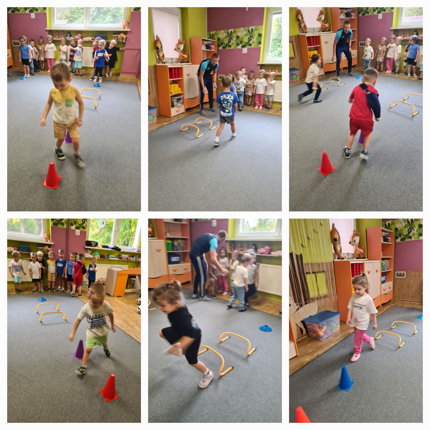 · Slalom z przeszkodami – dzieci musiały wykazać się zwinnością i koncentracją, omijając pachołki i pokonując rozmaite przeszkody.