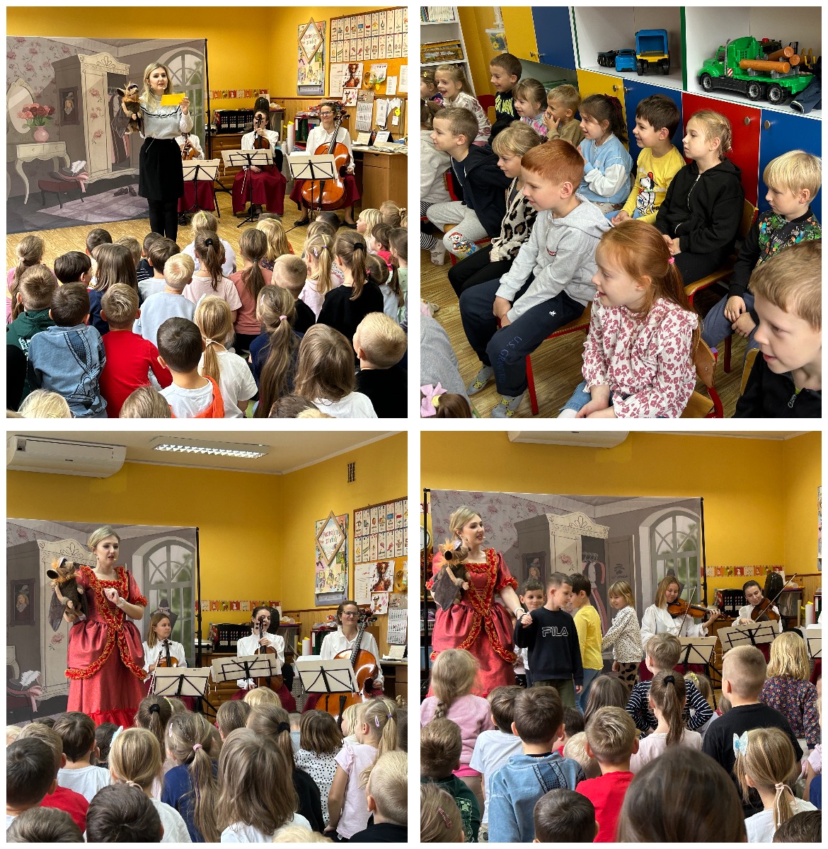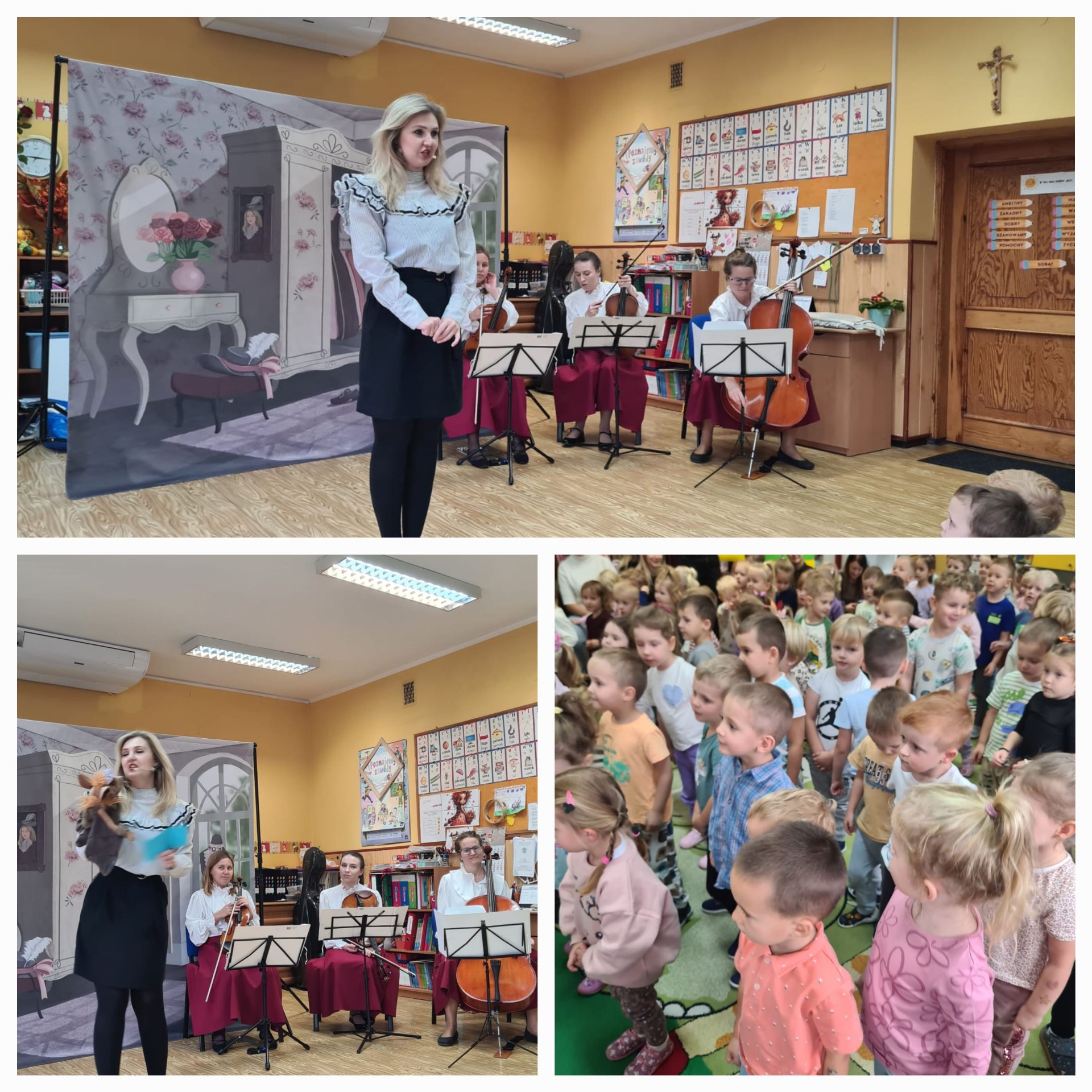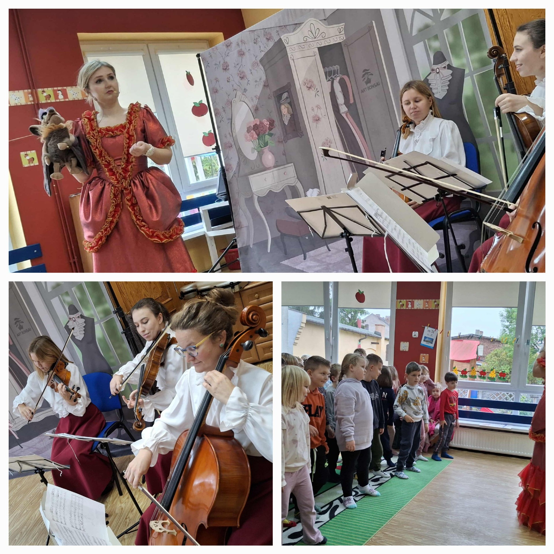 Dzieci z zaciekawieniem słuchały występów trio smyczkowego, poznając instrumenty takie jak skrzypce, altówka i wiolonczela. Wspólnie z panią Pchełką i Nietoperzycą Emilką uczestnicy wesoło odkrywali tajemnice klasycznych melodii, ucząc się przy tym wrażliwości na piękno muzyki i brzmienie prawdziwych instrumentów.