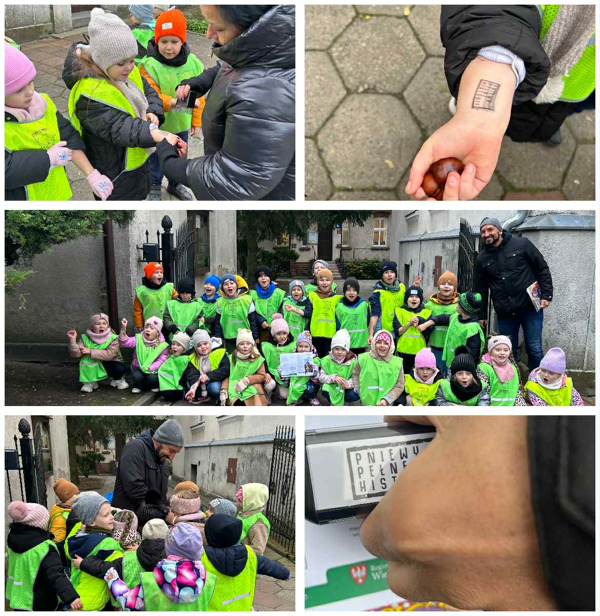Tym razem dzieci realizowały temat związany z historią i dziedzictwem lokalnym. Celem zadania było poznanie przez przedszkolaków najbliższej okolicy oraz uświadomienie sobie jej historycznego znaczenia. W ramach projektu dzieci wraz z wychowawczynią postanowiły zagrać w quest pt. „Pniewy pełne historii”. 🗺️ Questy to gry terenowe, podczas których uczestnicy rozwiązują zagadki i wykonują zadania, prowadzące do ukrytego „skarbu” – w tym przypadku pieczęci. Przewodnikiem naszej wyprawy był pan Marcin – tata Bruna, któremu serdecznie dziękujemy za wspólne wędrowanie! 😍
