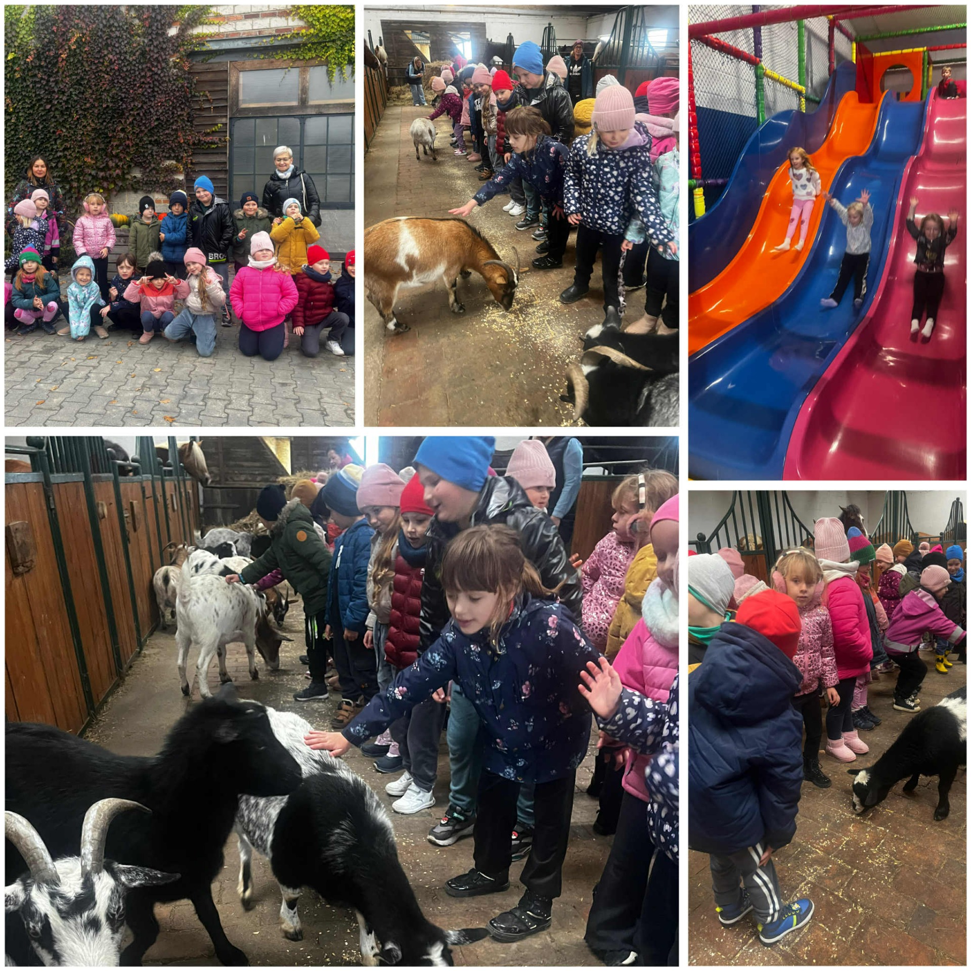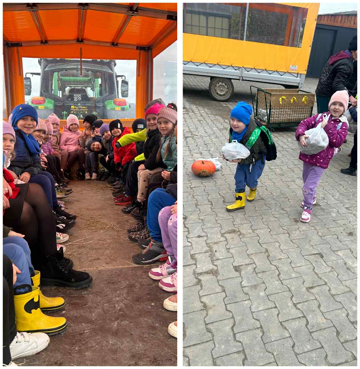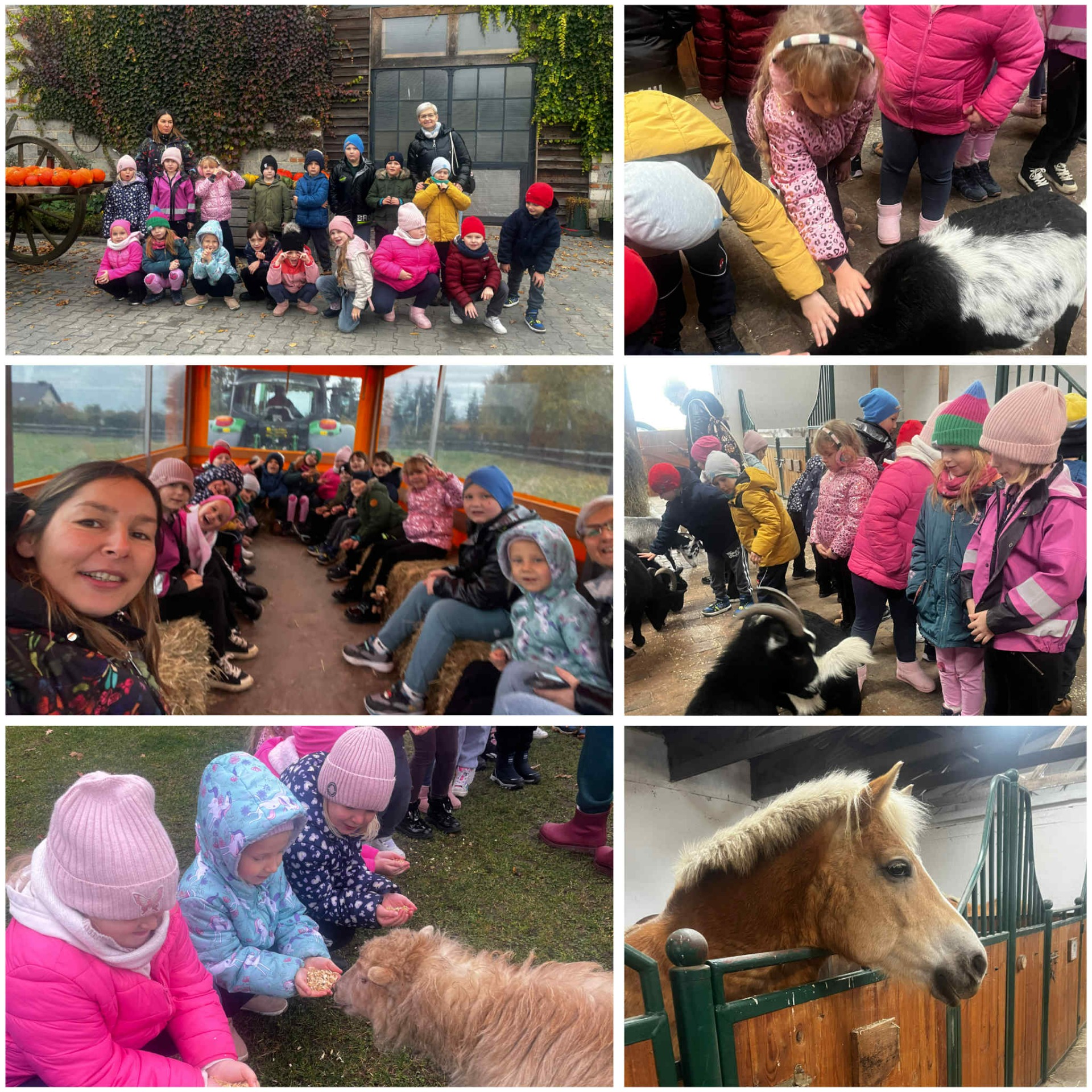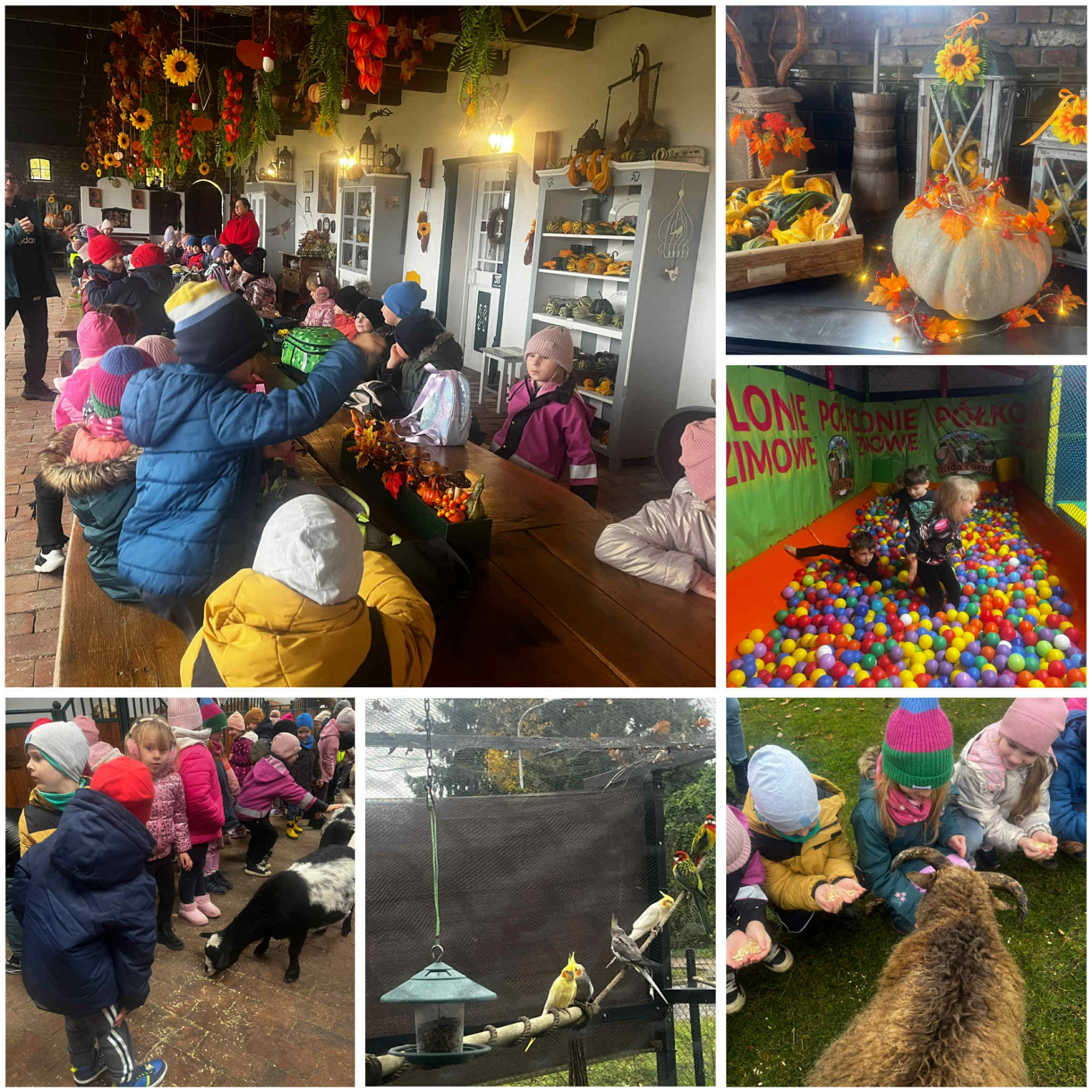 24 października 2025 r. grupy „Marynarzy” i „Botaników” wybrały się na wycieczkę do gospodarstwa edukacyjnego KIDS FARM na wykopki. Tuż po przyjeździe rozpoczęło się zwiedzanie gospodarstwa. Przedszkolaki odwiedziły stajnię, gdzie mogły obcować z końmi, kucykami i krową Milką. Dzieci karmiły owsem kozy i owce, a także zwiedzały zaczarowany ogród, w którym obserwowały ryby, ptaki, żółwie, króliki i świnki morskie. Kolejnym punktem programu był przejazd traktorem na pole. Choć pogoda nieco pokrzyżowała plany i dzieci nie mogły zejść z zadaszonej przyczepy, by własnoręcznie zbierać ziemniaki, to mimo to przywiozły z tej wyprawy ogrom wiedzy i mnóstwo radosnych wspomnień. Gospodarstwo doskonale poradziło sobie ze zmianą planów – w miejsce wykopków dzieci mogły poszaleć w małpim gaju, co wywołało u nich ogromną radość. Na zakończenie, w ramach podziękowania za odwiedziny, każdy przedszkolak otrzymał „wypłatę” w postaci ziemniaków. Podczas wycieczki dzieci poszerzały swoją wiedzę na temat zwierząt hodowlanych, rozwijały wrażliwość na ich potrzeby, a także zainteresowanie przyrodą i pracą ludzi na roli. Był to dzień pełen nauki, zabawy i wspaniałych emocji!