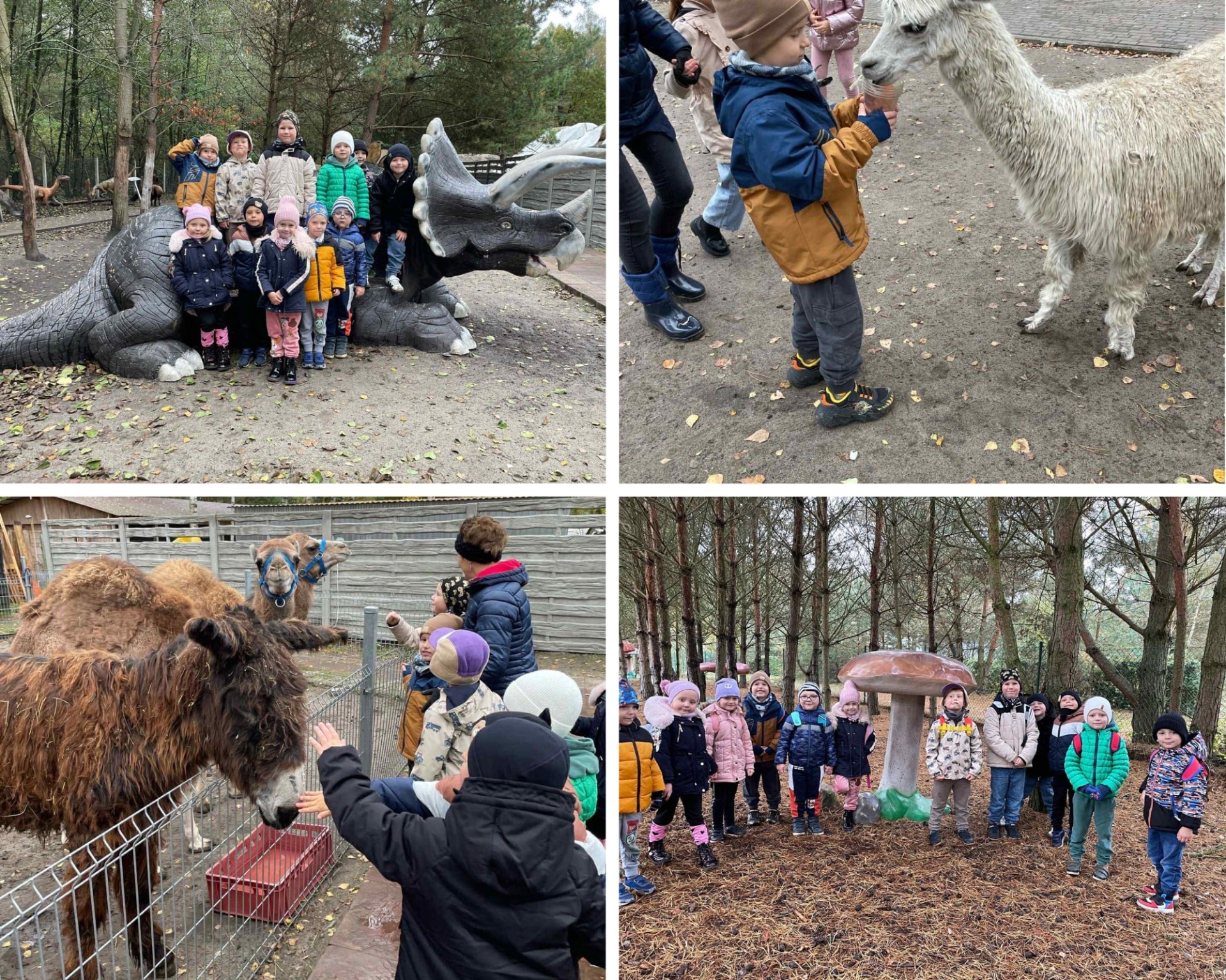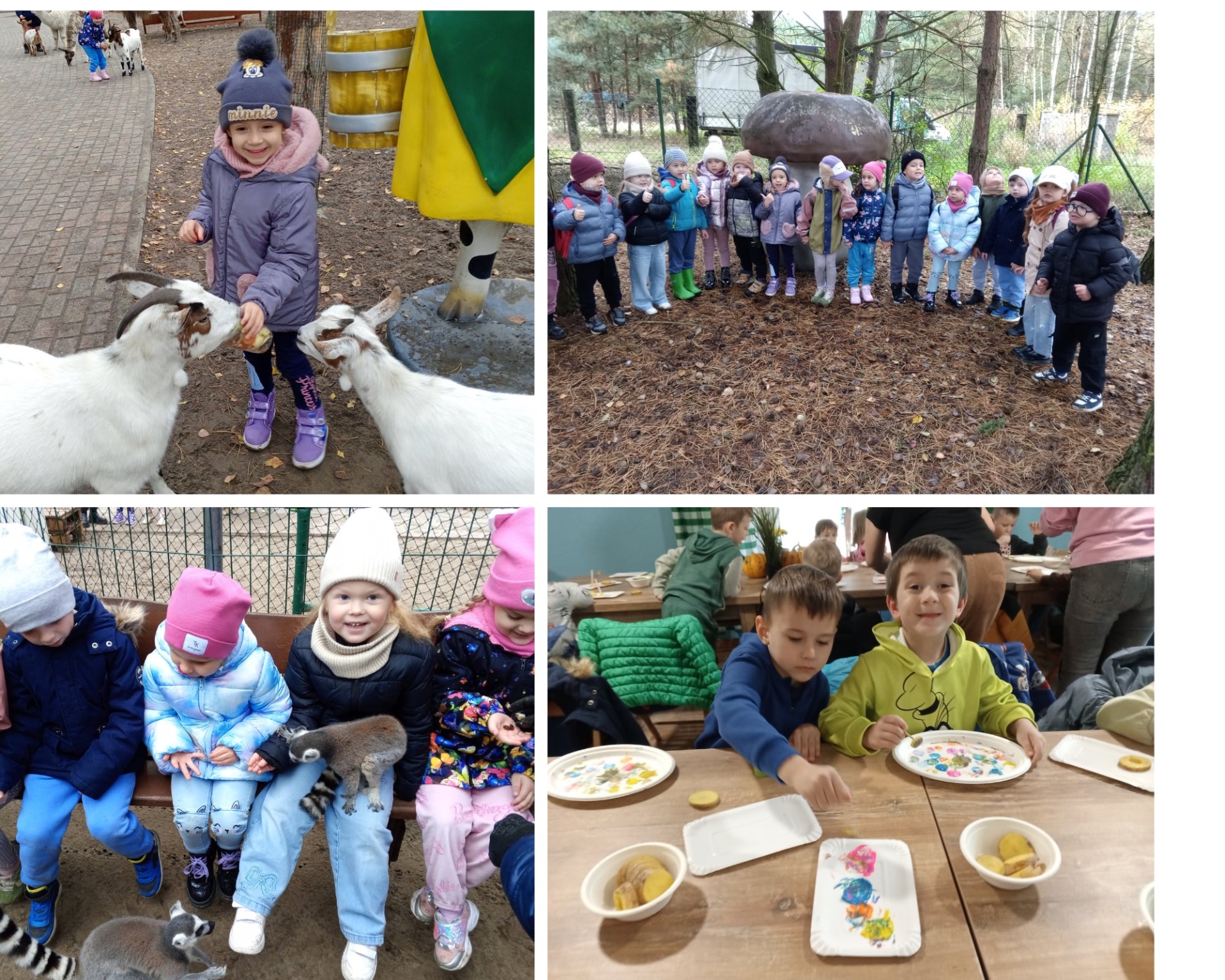 W piątek, 24 października 2025 r., dzieci z grup „Alpiniści” i „Tropiciele” wyruszyły na wycieczkę do Zagrody Rodzinnej Siedlisko „Józefówka” w Sątopach. Na miejscu czekało na nas wiele atrakcji – zwiedzanie farmy z różnorodnymi zwierzętami hodowlanymi i egzotycznymi, takimi jak zebry, kapibary czy lemury. Dzieci mogły samodzielnie karmić zwierzęta i z bliska je podziwiać. Wzięliśmy również udział w ciekawych warsztatach plastycznych, podczas których stemplowaliśmy ziemniakami. Nie zabrakło też degustacji pieczonej pyry – symbolu tego wyjątkowego dnia. Wycieczka upłynęła w radosnej atmosferze pełnej śmiechu, zabawy i niezapomnianych wrażeń!