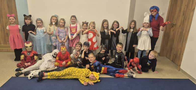 Każdego roku, 5 listopada obchodzony jest Dzień Postaci z Bajek — wyjątkowe święto wszystkich małych i dużych miłośników bajek, baśni i fantastycznych opowieści. W naszym przedszkolu również nie mogło zabraknąć tej wspaniałej okazji do przeniesienia się w baśniowy świat pełen ulubionych bohaterów z książek i filmów. Tego dnia przedszkolaki przyszły do przedszkola przebrane za swoje ulubione postacie, a przedszkole zamieniło się w prawdziwy świat baśni. Podczas zajęć przedszkolaki uczestniczyły w różnych zabawach inspirowanych bajkami – rozwiązywały zagadki, układały puzzle z bohaterami ulubionych opowieści, brały udział w quizach i konkursach. Nie zabrakło również wspólnego czytania bajek, które przypomniało wszystkim, jak ważne są dobro, przyjaźń i odwaga. Dzień Postaci z Bajek był nie tylko okazją do świetnej zabawy, ale też do rozwijania wyobraźni, przypomnienia wartości płynących z bajkowych historii i utrwalenia miłości do książek. Dziękujemy rodzicom za przygotowanie wspaniałych kostiumów oraz wszystkim dzieciom za aktywny udział i radość, jaką wniosły tego dnia do naszego przedszkola.