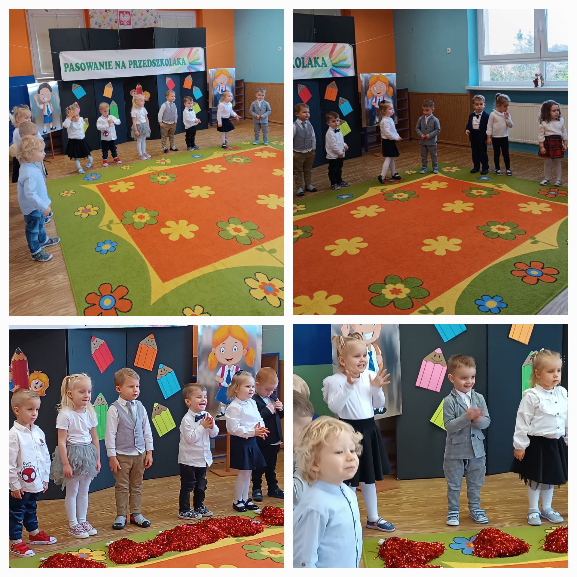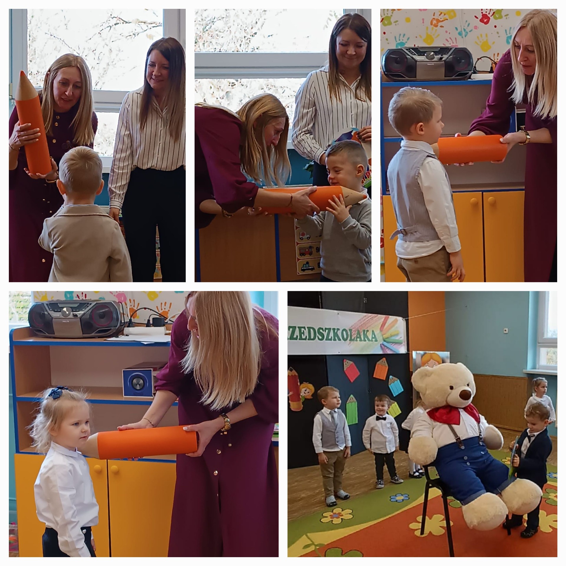 Kulminacyjnym momentem uroczystości było symboliczne pasowanie na przedszkolaka. Pani Dyrektor, przy pomocy dużej kolorowej kredki, oficjalnie przyjęła każde dziecko do grona prawdziwych przedszkolaków. Ten gest wywołał wiele wzruszeń i dumnych uśmiechów. Po części oficjalnej dzieci otrzymały pamiątkowe dyplomy oraz przygotowane przez rodziców drobne prezenty, a całość zakończyła się wspólnym zdjęciem.