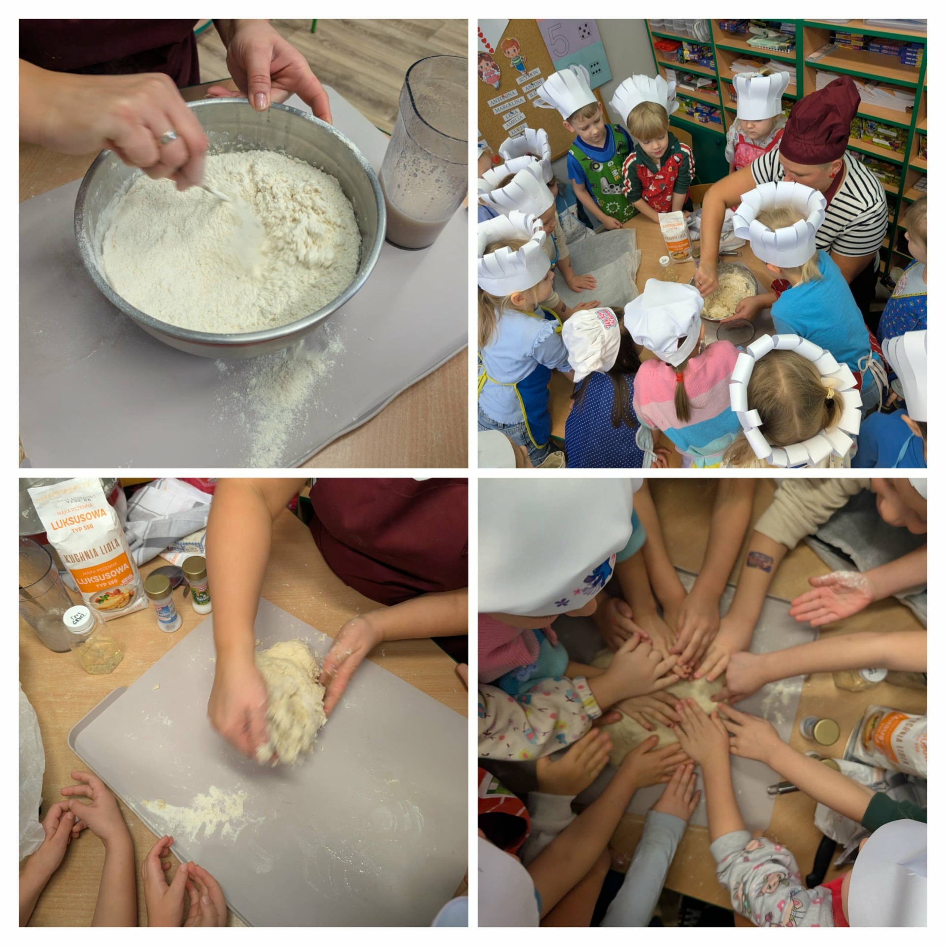 Wspólne ugniatanie ciasta stało się nie tylko edukacyjnym doświadczeniem, ale i dobrą zabawą.