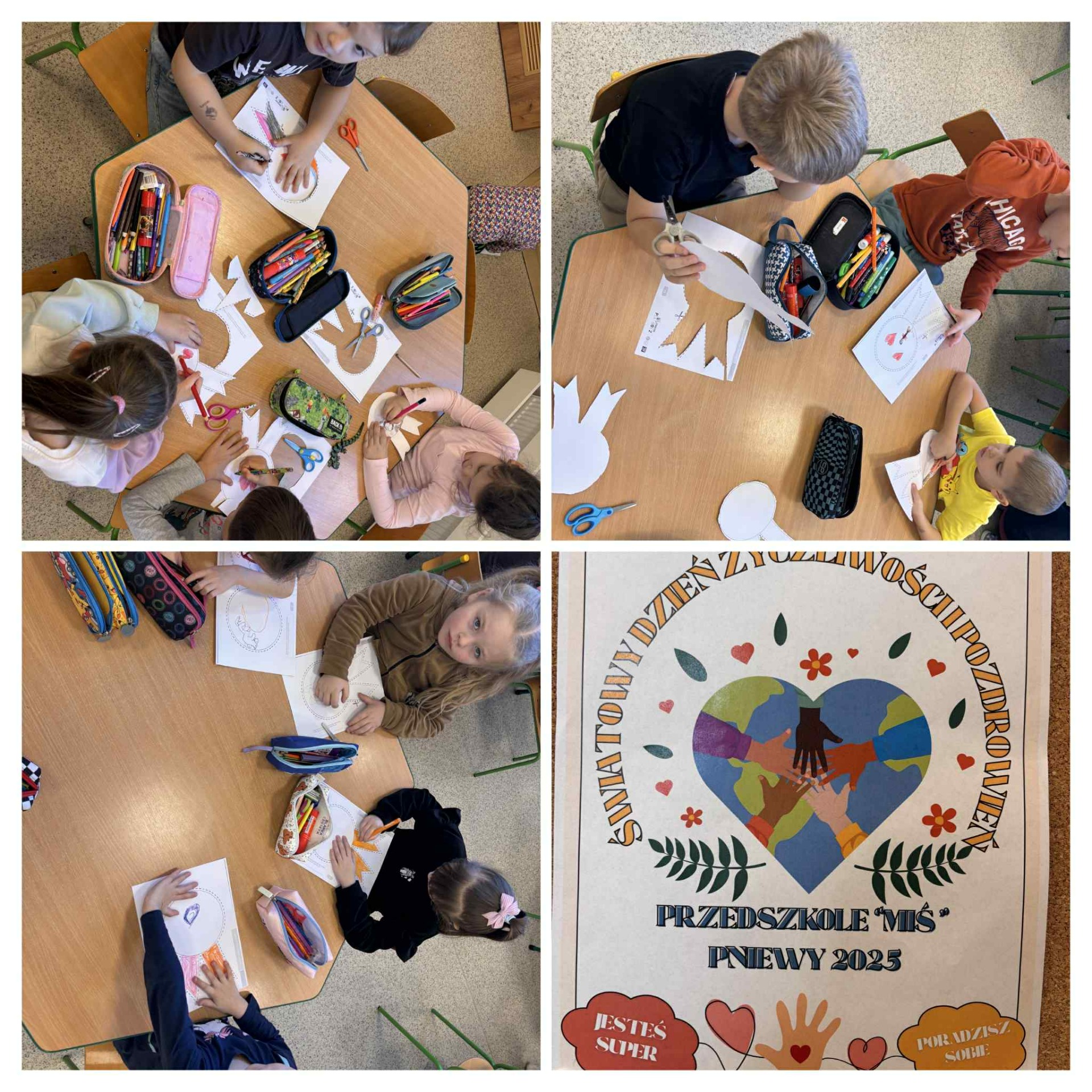 W minionym tygodniu świętowaliśmy Tydzień Życzliwości, który na początku tygodnia zainaugurowały pedagog specjalna Magdalena Hojan oraz psycholog Hanna Janka. Było to wprowadzenie do Międzynarodowego Dnia Życzliwości i Pozdrowień, przypadającego w piątek, 21 listopada. Najważniejszym przesłaniem spotkań w grupach z początku tygodnia była myśl, że każdy człowiek potrafi być życzliwy. Dzieci wysłuchały historii o dwóch kotach 🐱🐱 – Cyrusie i Milusiu, rozmawiały o tym, jak okazywać życzliwość oraz wymyślały sposoby na życzliwe słowa i gesty: uśmiech, przytulenie, uścisk dłoni, miłe powitanie, pocieszanie czy komplementy. W salach pojawiły się specjalne plakaty przypominające o wyjątkowości tego tygodnia, a przedszkolaki przez kolejne dni brały udział w różnych aktywnościach, które pokazywały, że nasze słowa mają moc, a życzliwość tworzy wspaniałą atmosferę. 💛 Dziękujemy wszystkim dzieciom za piękne postawy i uśmiechy! 😊