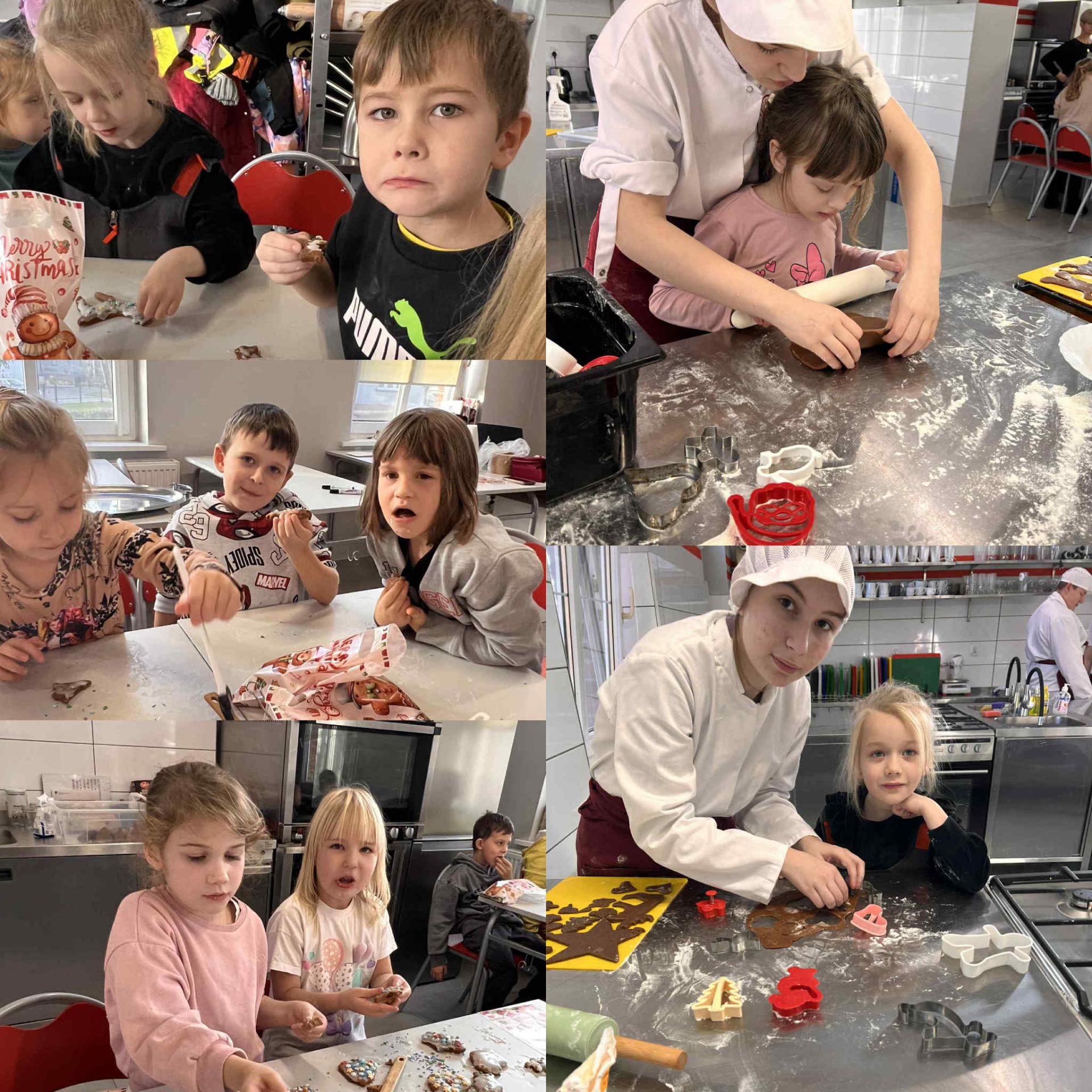 3 grudnia grupa „Botanicy” wzięła udział w wyjątkowych, pachnących świętami warsztatach piernikowych. Zajęcia wprowadziły dzieci w magiczny klimat i stały się doskonałą okazją do rozwijania kreatywności, współpracy oraz umiejętności kulinarnych. Wspólnie z uczniami klasy branżowej z Zespołu Szkół im. E. Sczanieckiej oraz nauczycielami dzieci wałkowały ciasto, wykrawały świąteczne kształty i układały swoje pierniczki na blachach. Najwięcej radości przyniosło jednak dzieciom dekorowanie upieczonych słodkości. Mali cukiernicy tworzyli kolorowe i pomysłowe wzory, wykazując się ogromną wyobraźnią. Warsztaty upłynęły w atmosferze radości, twórczej zabawy i przedświątecznego ciepła. To był dzień pełen uśmiechów oraz cudownych, słodkich wrażeń.