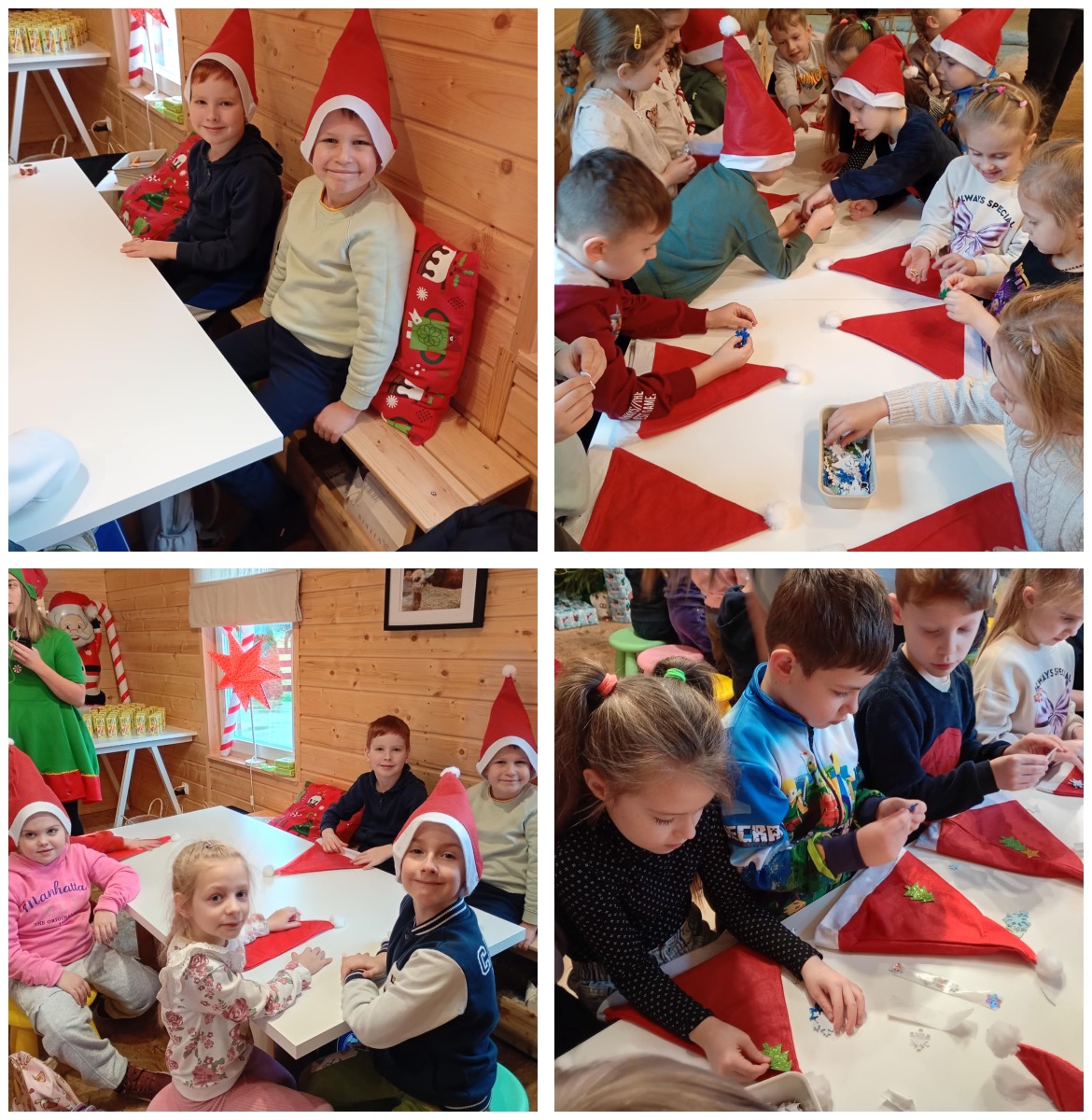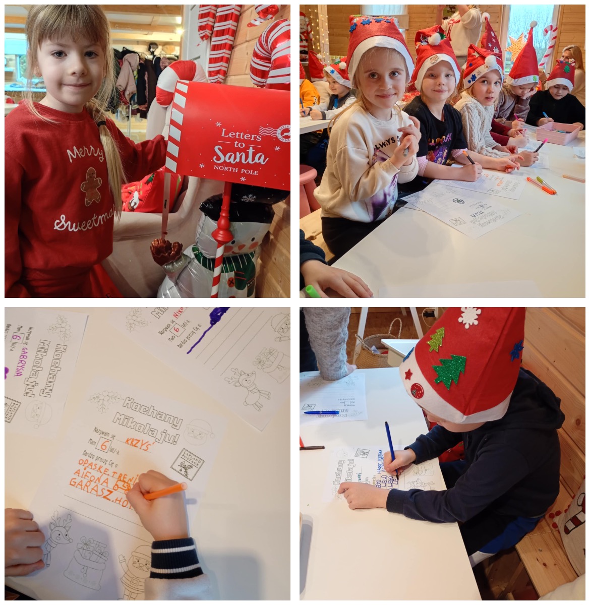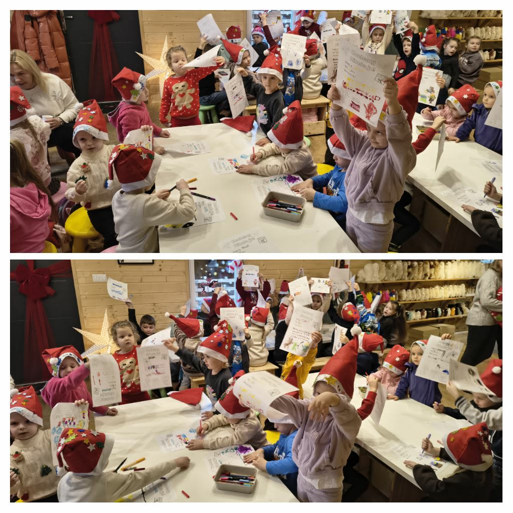 W trakcie wycieczki dzieci rozwijały umiejętność współdziałania w grupie rówieśniczej oraz pracy w parach daltońskich, wspólnie wykonując świąteczne zadania. Dużo emocji wzbudziło pisanie listów do Gwiazdora, które pobudzało wyobraźnię i twórcze myślenie. Nie zabrakło również pysznych atrakcji – przedszkolaki z radością piły świąteczne kakao oraz z wielkim zaangażowaniem dekorowały pierniki, tworząc własne, kolorowe słodkości. Największym przeżyciem okazało się spotkanie ze Świętym Mikołajem, który obdarzył dzieci ciepłym słowem i świąteczną życzliwością.