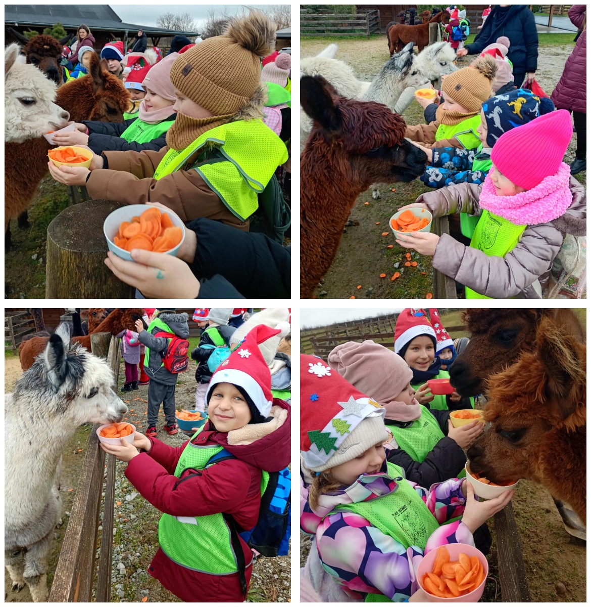 Podczas zajęć przedszkolaki uczestniczyły w bożonarodzeniowych warsztatach, podczas których rozwijały zdolności manualne, wykonując różnorodne prace plastyczne i dekoracje. Dzieci miały także okazję poznać alpaki, ich zwyczaje oraz nauczyć się zasad właściwego kontaktu ze zwierzętami. Bezpośrednia obserwacja alpak pozwoliła im poszerzyć wiedzę przyrodniczą oraz kształtować postawy szacunku i wrażliwości wobec zwierząt i środowiska.