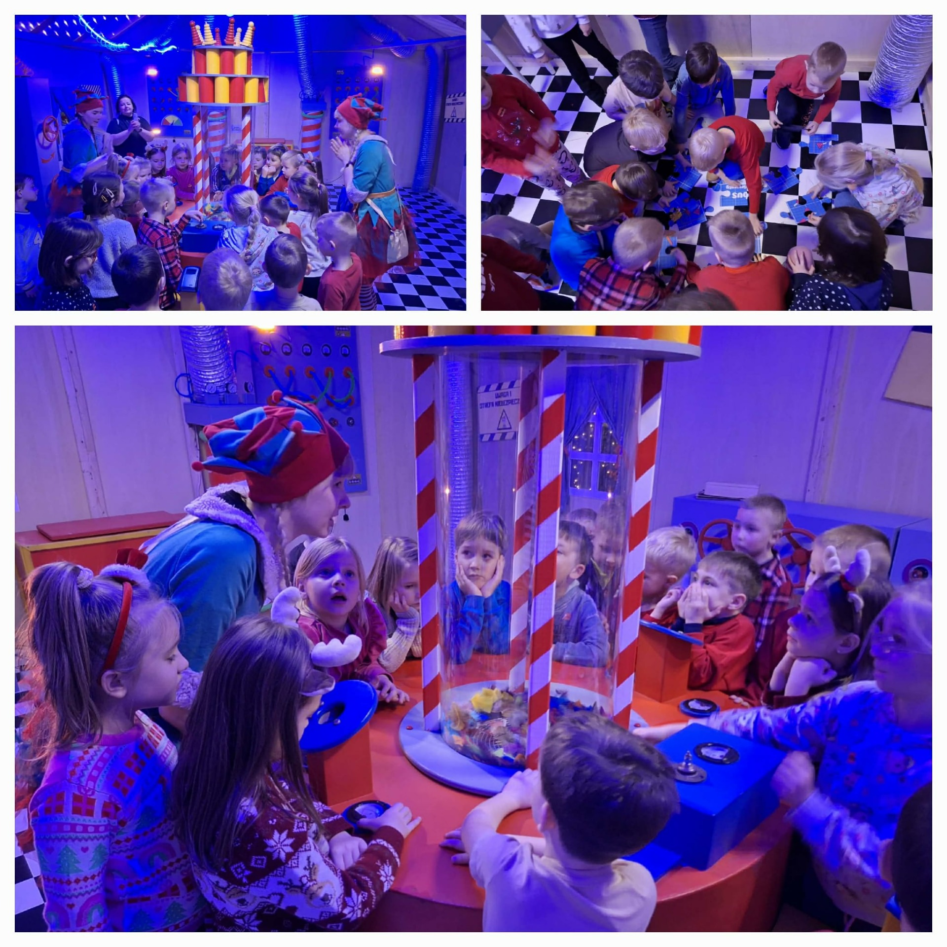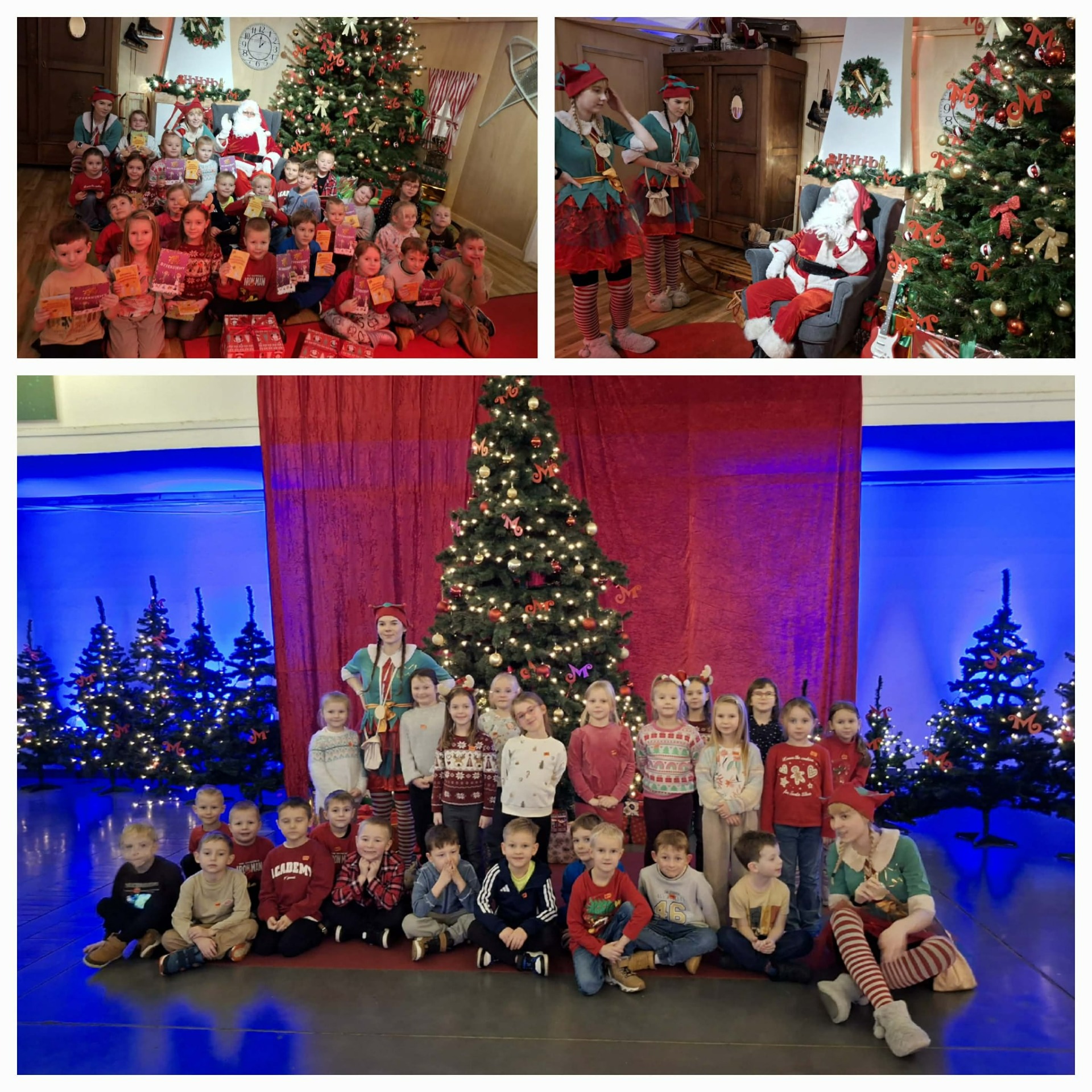 We wtorek 09.12.2025 r. dzieci z grup „Astronauci” i „Tropiciele” wyruszyły w niezwykłą podróż do Wielkiej Fabryki Elfów w Poznaniu, gdzie już od progu przywitały je radosne elfy – przewodnicy po magicznym świecie świątecznych tajemnic. Pod ich opieką dzieci przemierzały kolejne sale fabryki, wykonując wyjątkowe zadania, aby zdobyć składniki potrzebne do stworzenia eliksiru świątecznego, który miał odczarować Świętego Mikołaja. Wśród wielu atrakcji znalazło się również pisanie listów do Mikołaja – pełnych dziecięcych marzeń, dobrych życzeń i kolorowych ilustracji. Na małych odkrywców czekały też wesołe zabawy integracyjne, zręcznościowe i sensoryczne, które dostarczyły mnóstwo radości i śmiechu. Kulminacyjnym momentem wycieczki było spotkanie z samym Świętym Mikołajem, który obdarował całą grupę wyjątkowym prezentem. To był dzień pełen magii, ciepła i świątecznego czaru, który na długo pozostanie w pamięci dzieci.